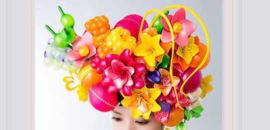 「バルーンフラワー」だ。通常は膨らませて使うバルーンを膨らませずにワイヤー等で加工したものである。バルーン独特の質感が面白い。